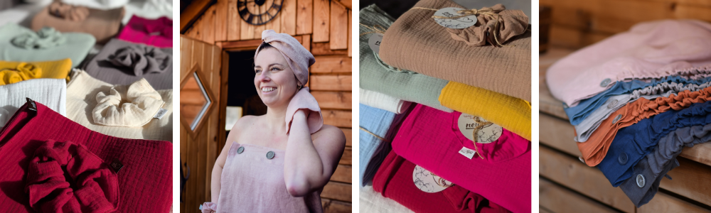 Přírodní materiály mají své místo i při saunování. Pro chvíle relaxace v sauně je len přirozenou volbou. Naše lněné saunové kilty jsou lehké, savé a příjemné na těle, takže dobře fungují i při vyšších teplotách. Doplněním jsou dámské saunové sady, které nabízí pohodlí a klid během celého saunového rituálu.