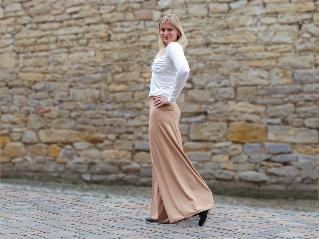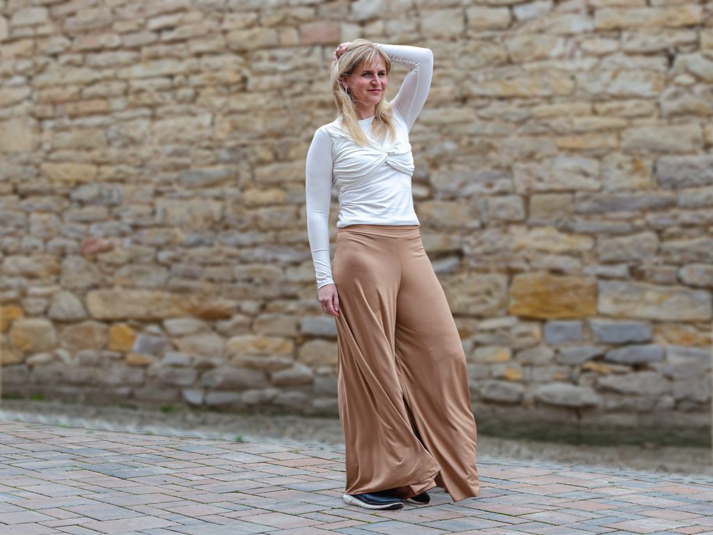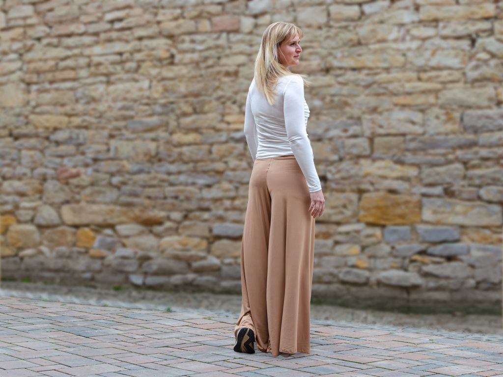 Dámské kalhoty z jemné viskózy v béžové barvě jsou skvělou volbou pro ženy, které hledají pohodlné, lehoučké a příjemné oblečení na každý den. Jemná viskóza je hebká na dotek, splývavá a navíc nemačkavá, takže kalhoty vypadají hezky i při celodenním nošení. Široký volný pas je velmi pohodlný a lze ho podle potřeby ohrnout. Dámské viskózové kalhoty se hodí na doma, do města, na cestování i na volný čas.