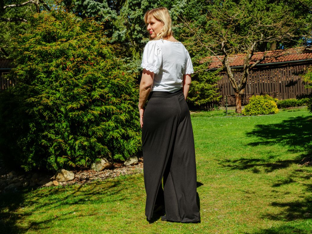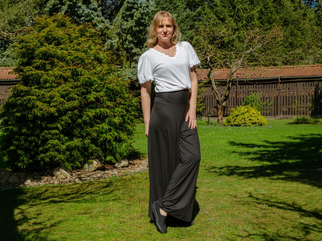 - Široký volný pas: Pohodlný pas se přizpůsobí postavě a lze ho podle potřeby ohrnout. Nikde netlačí a neomezuje pohyb.