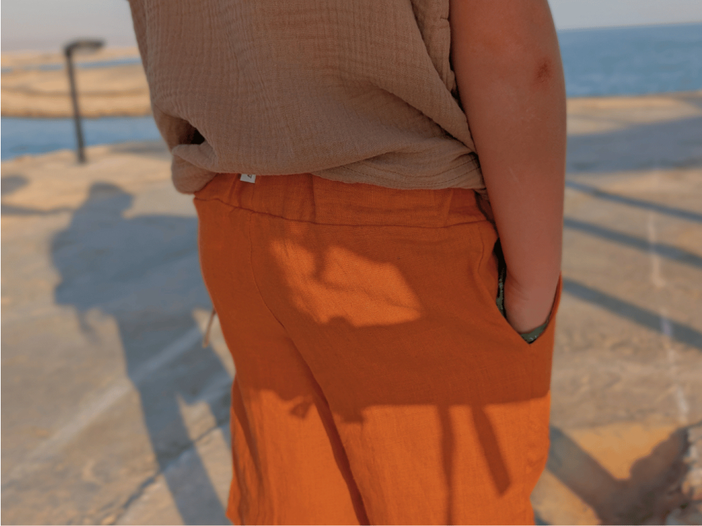 Len o gramáži 185 g/m² je pevný, ale příjemný na dotek a krásně sedí. Tyto kraťásky milujeme pro jejich variabilitu a praktičnost, které ocení každý rodič. Oranžová barva je výrazná, ale dobře kombinovatelná – zkrátka ideální volba pro děti, které chtějí být vidět. Kromě této barvy nabízíme i další odstíny, vyrobíme jej z jakékoliv, co nabízíme na webu v jiných produktech. Speciální barvy odesíláme nejpozději do 3 pracovních dnů.