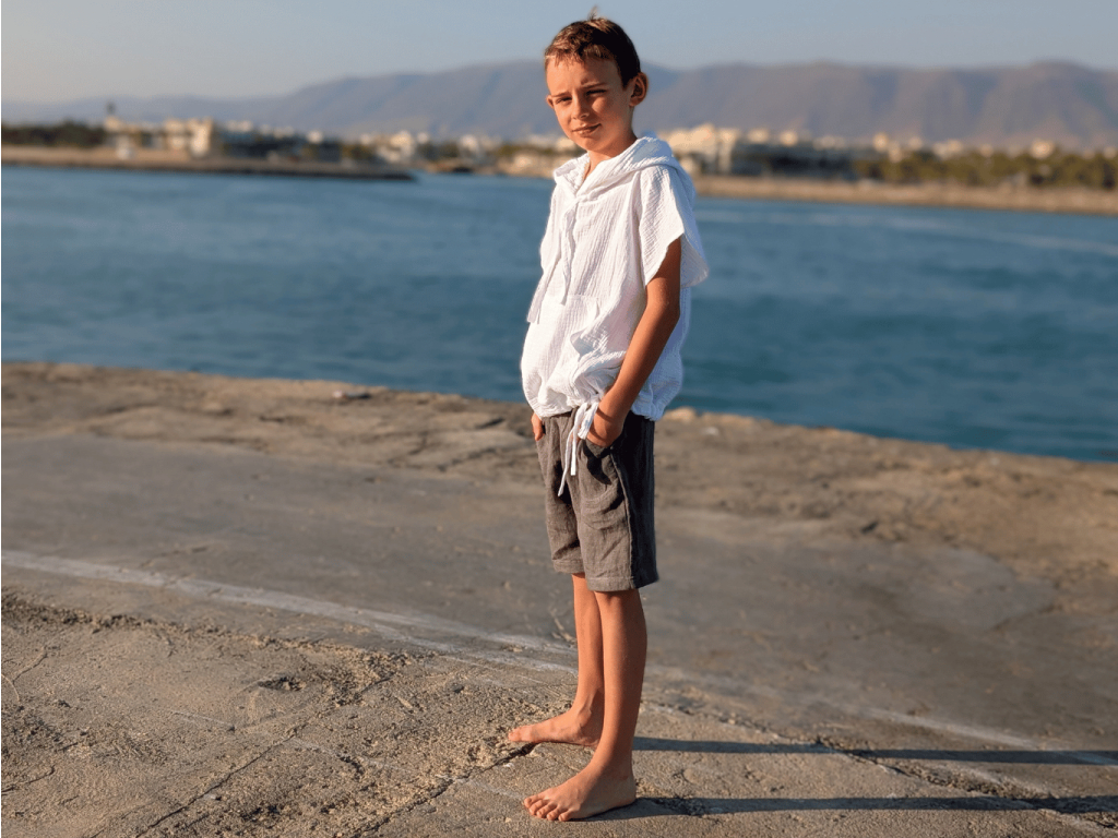 Pohodlné kraťasy ze 100% lnu o gramáži 185 g/m² v nadčasové šedé barvě, která se hodí ke všemu. Jsou ušité z přírodního, hypoalergenního lnu s certifikací OEKO-TEX®, takže jsou šetrné i k té nejcitlivější dětské pokožce. Díky pružnému pasu na gumu se skvěle oblékají a pohodlně nosí po celý den. Nechybí ani dvě kapsy na dětské poklady z výletů, hřiště nebo lesa.