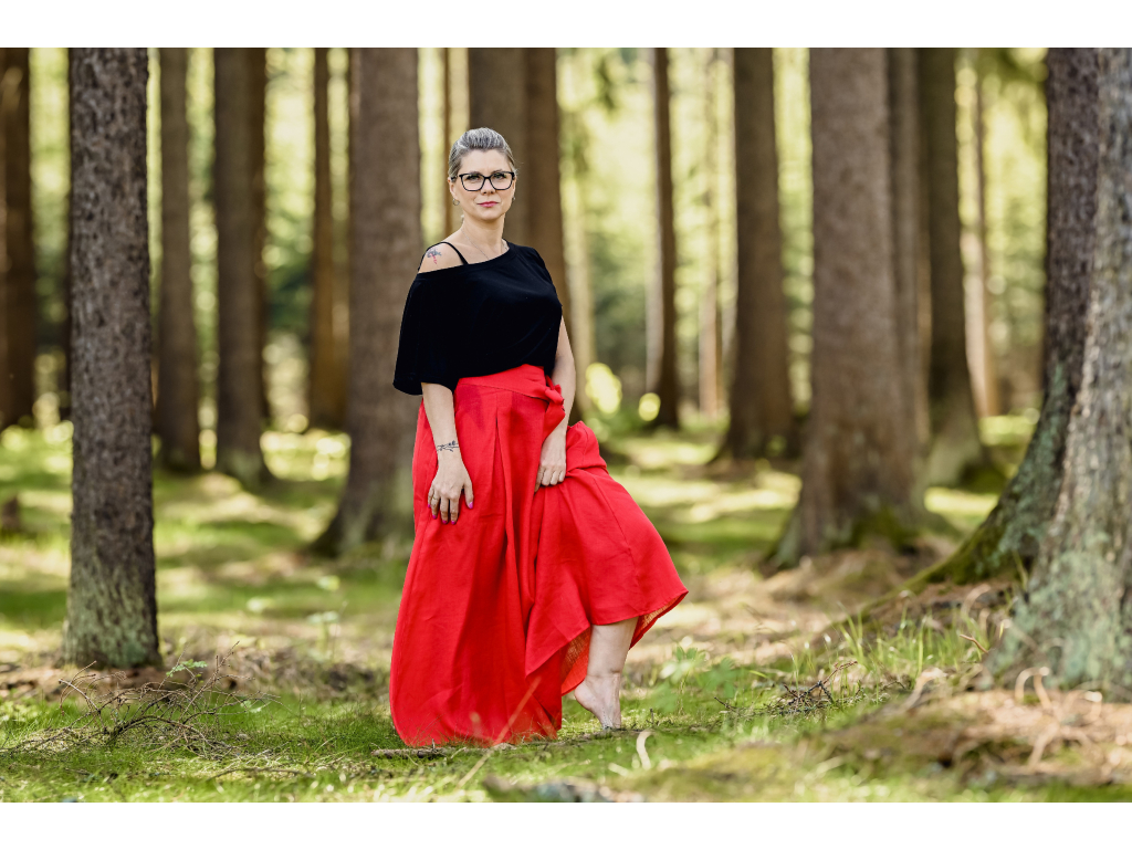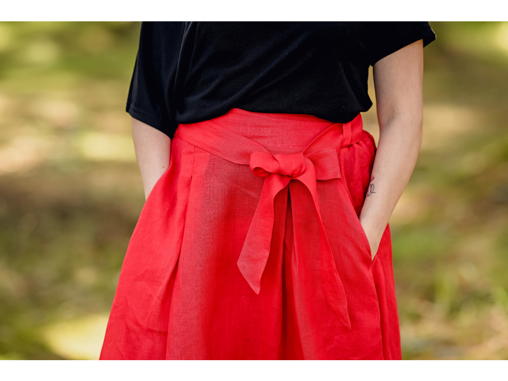 Lněná dlouhá sukně v super softové úpravě: Energie a ženskost v sytě červené