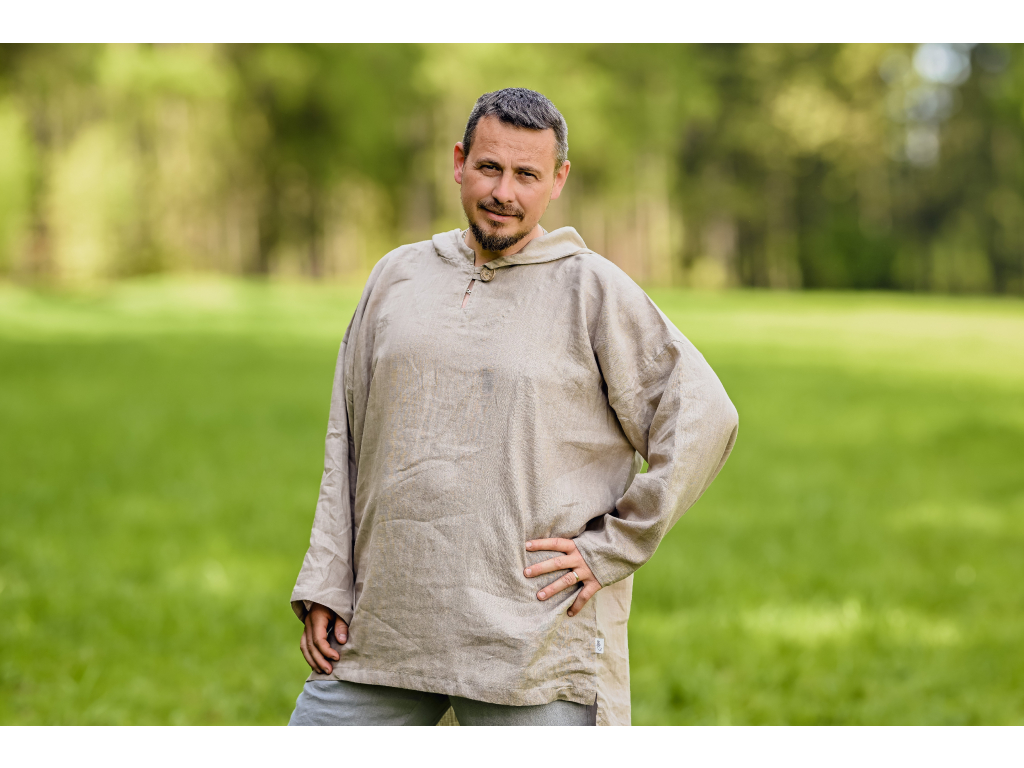 Lněná košile s kapucí – pohodlný unisex kousek z přírodního materiálu