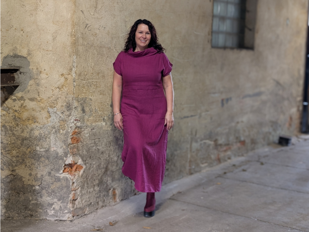 Elegantní, pohodlné a všestranné — takové jsou naše lněné šaty s límcem, které pro vás šijeme v naší podkrkonošské dílně.