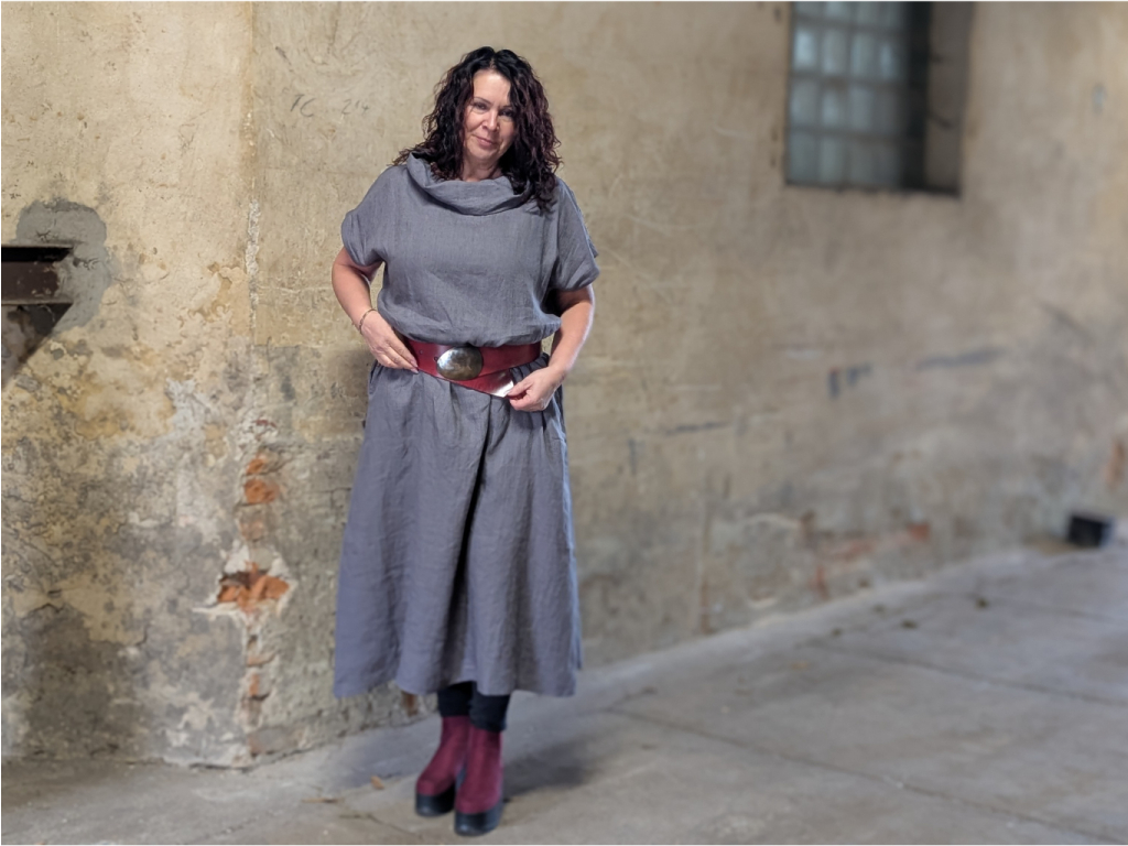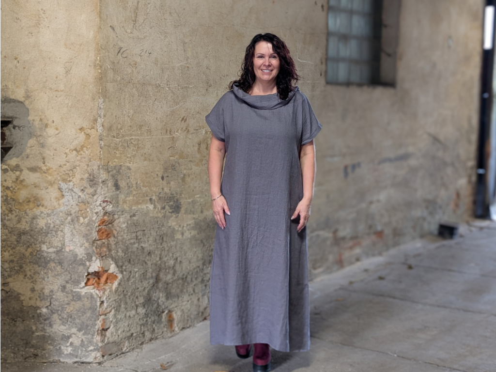 Elegantní, pohodlné a všestranné — takové jsou naše lněné šaty s límcem, které pro vás šijeme v naší podkrkonošské dílně.
