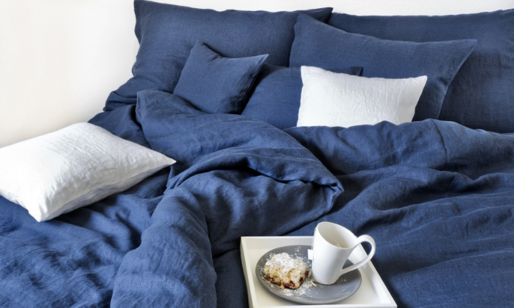 Tmavě modré lněné povlaky na přikrývky a polštáře ze 100% lnu pro nejmenší. Česká výroba, garance kvality.
