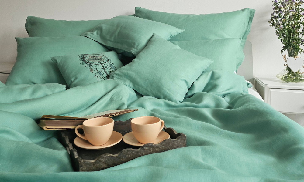 Zelené lněné povlaky na přikrývky a polštáře ze 100% lnu pro nejmenší. Česká výroba, garance kvality.
