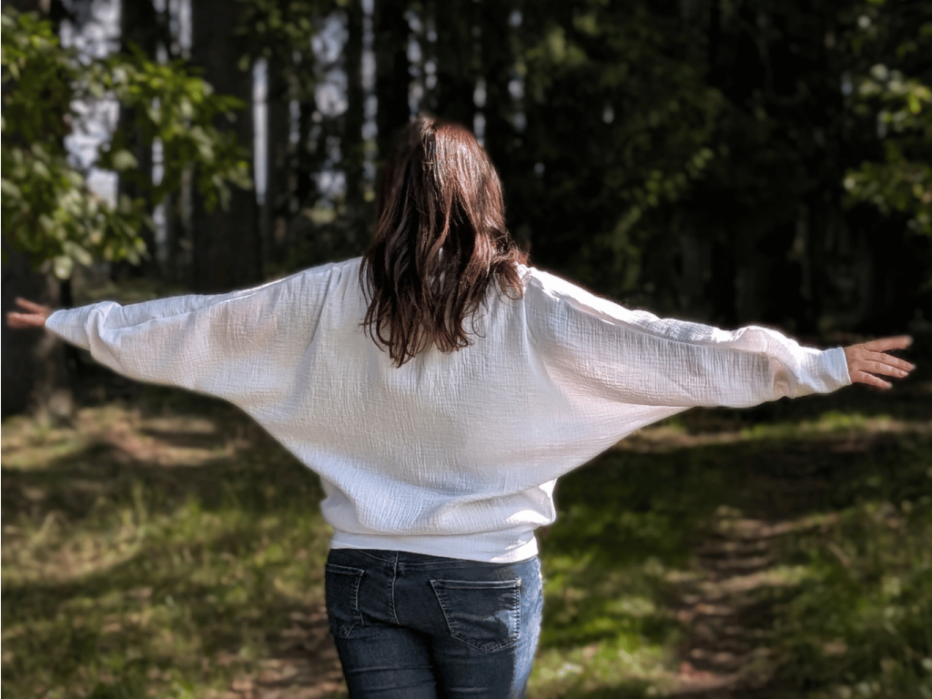 Střih: Volný, netopýří rukávy, spodní lem na knoflíky