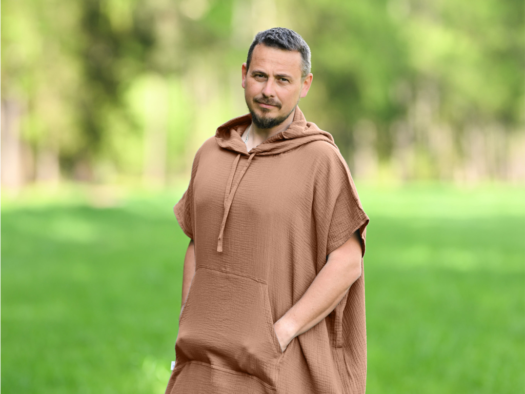 Pánské mušelínové pončo v hnědé barvě připomíná stabilitu a klid přírody. Díky hebkému materiálu ze 100% bavlny se příjemně nosí a zároveň zahřeje, když je potřeba. Je to kousek, který oceníte v sauně, na chalupě nebo při večerním odpočinku, kdy chcete mít jistotu pohodlí bez zbytečností.