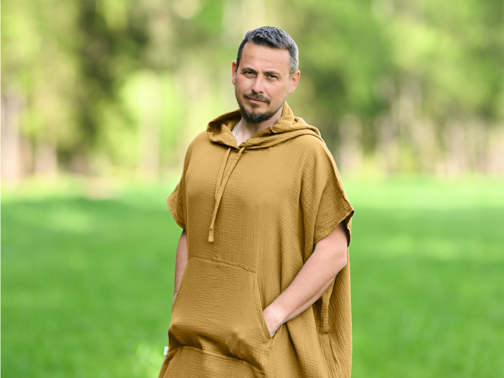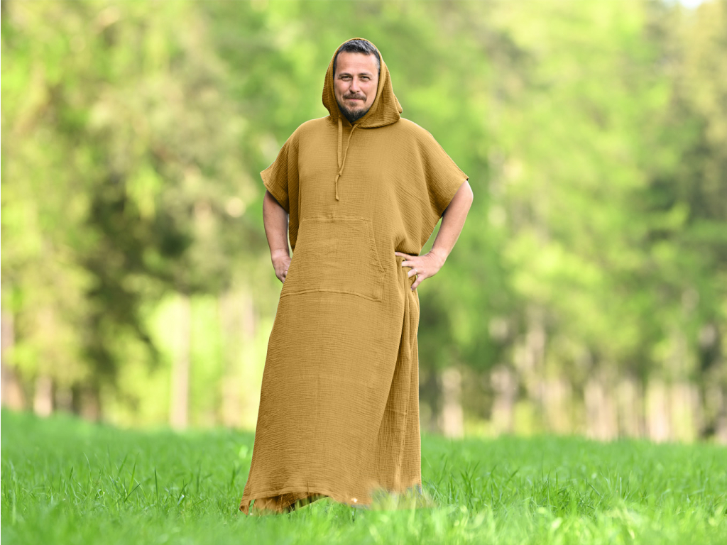 U nás si mušelínová ponča oblékne celá rodina. Dámské i pánské verze mají shodné rozměry a střihy, takže můžete vybírat zcela svobodně – podle barvy, délky a nálady. Nabízíme dvě délky – klasickou a prodlouženou, a víc než jen „pánskou“ a „dámskou“ verzi – nabízíme možnost vybrat si pončo podle vás, ne podle cedulky.