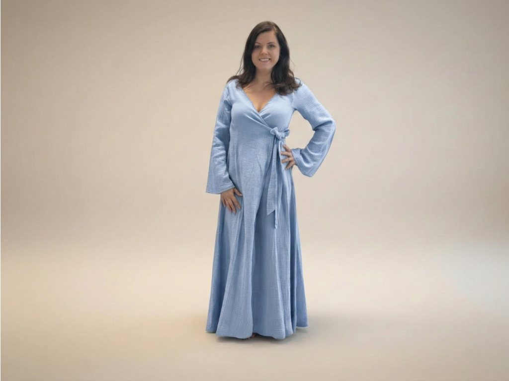 Mušelínový župan šatový - světle modrý